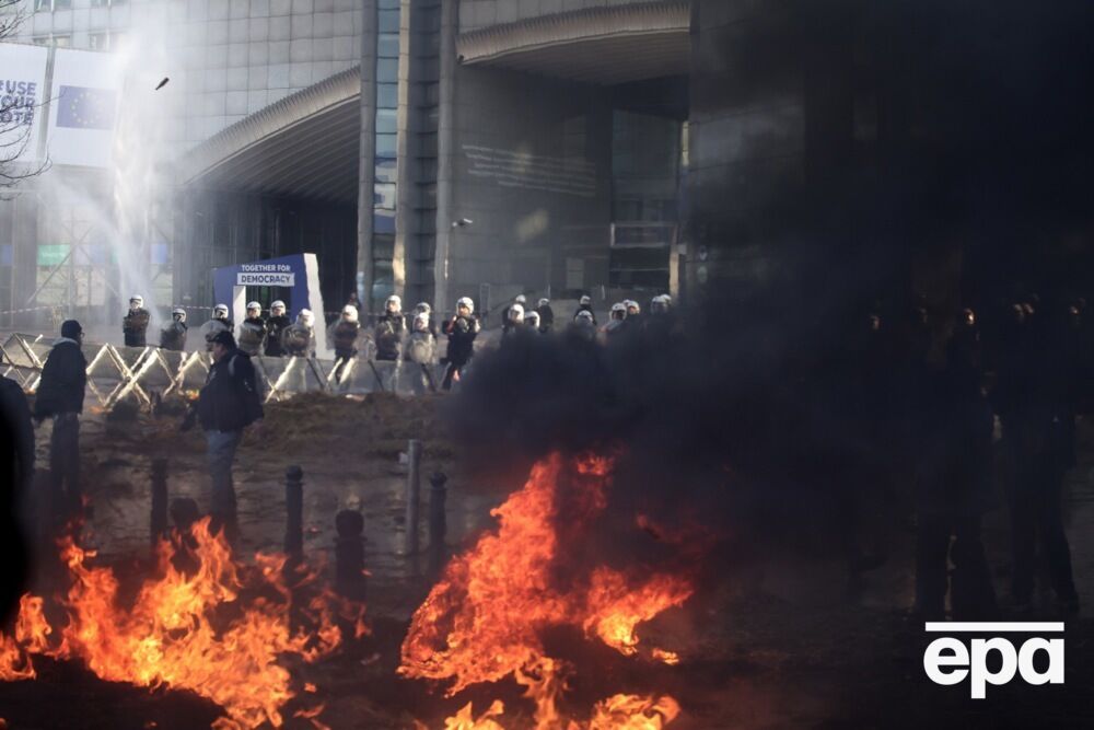 Небольшие группы пытались снести заграждения, возведенные перед парламентом в нескольких кварталах от места проведения саммита ЕС, но полиция применила слезоточивый газ и облила фермеров водой из шлангов, чтобы оттеснить их. По оценкам полиции, была повреждена статуя на площади, а основные магистрали Брюсселя были заблокированы примерно 1300 тракторами.