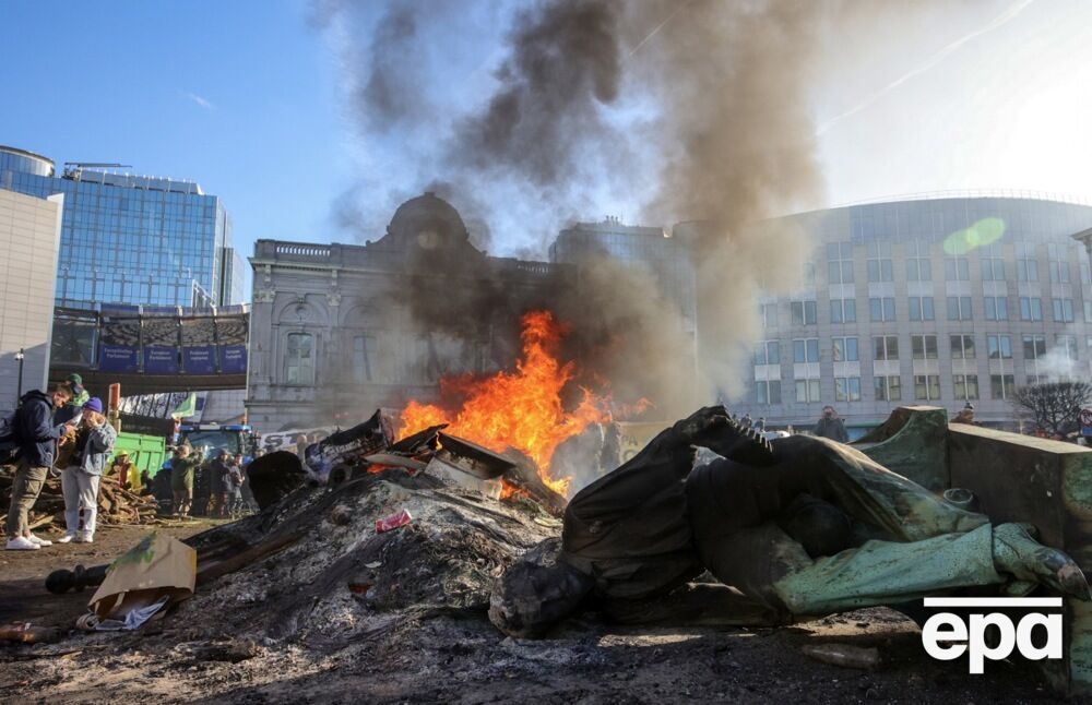 Фермеры забросали яйцами и камнями Европейский парламент в Брюсселе 1 февраля и устроили поджоги возле здания. Об этом сообщает Reuters.