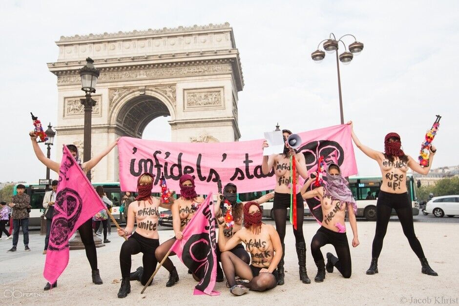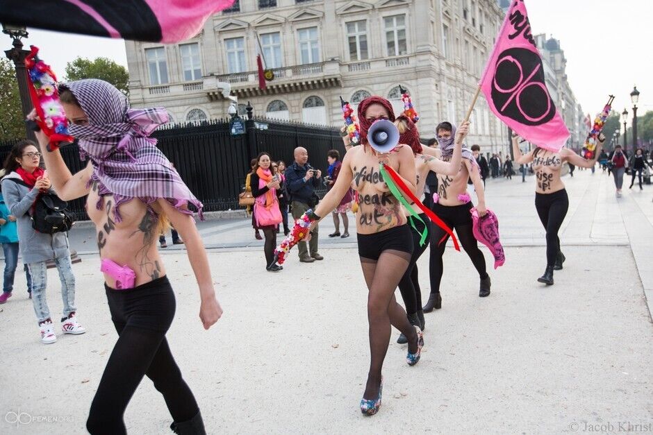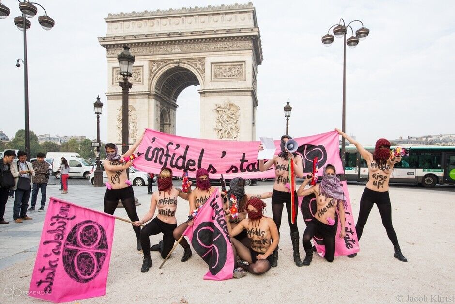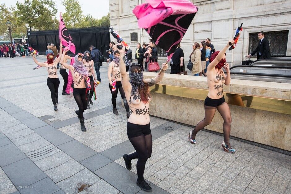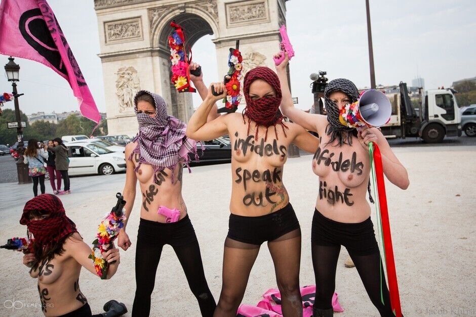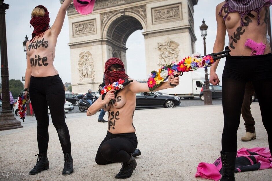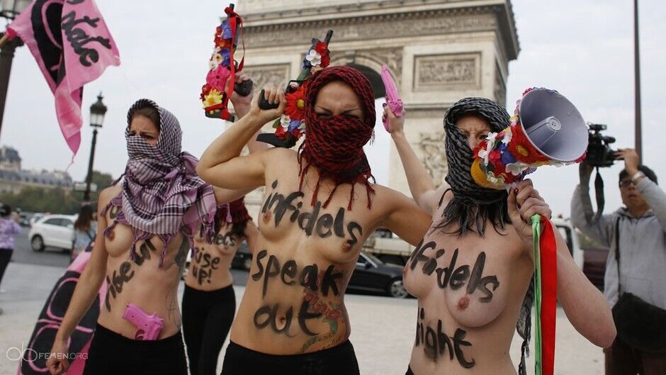 "Секстремистки" из организации Femen провели акцию протеста против действий "Исламского государства" на Ближнем Востоке. Десять топлес-активисток вышли на Елисейские поля Парижа с розовыми флагами выдуманного "Государства неверных" и пластиковыми автоматами в руках. Femen призвали европейцев открыто выступать против агрессии фундаменталистов. "Только публично осуждая их, мы сможем их уничтожить. Неверные, встаньте и боритесь против ИГ", – заявили в движении.