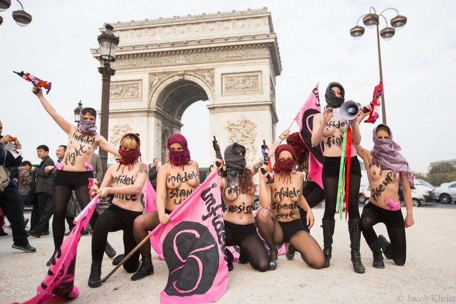 Femen оголились в центра Парижа в знак протеста против "Исламского государства". Фоторепортаж