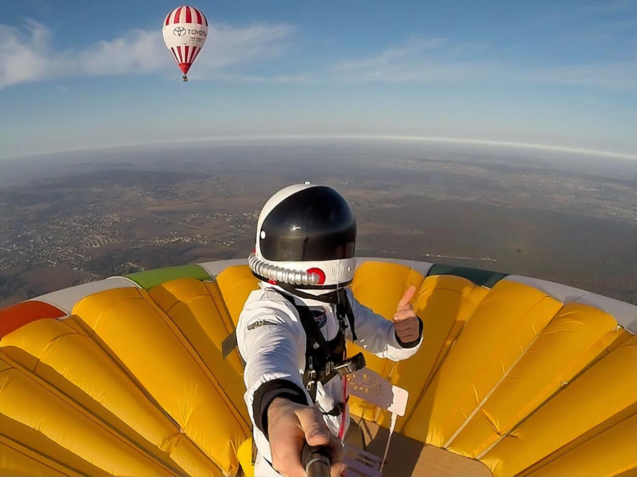 Спортсмен побил собственный рекорд, установленный в феврале 2020 года, когда он стоял на воздушном шаре на высоте 1217 м над уровнем моря.