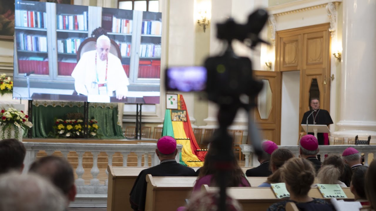 Видеозапись телемоста с папой римским обнародована в YouTube сибирского католического телевидения "Кана".