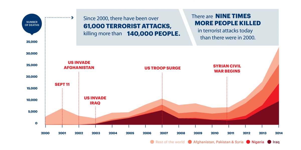 "Терроризм сейчас набирает силу с беспрецедентной скоростью", – прокомментировал полученные результаты руководитель организации Стив Киллелеа.