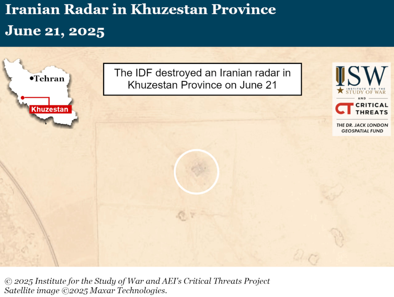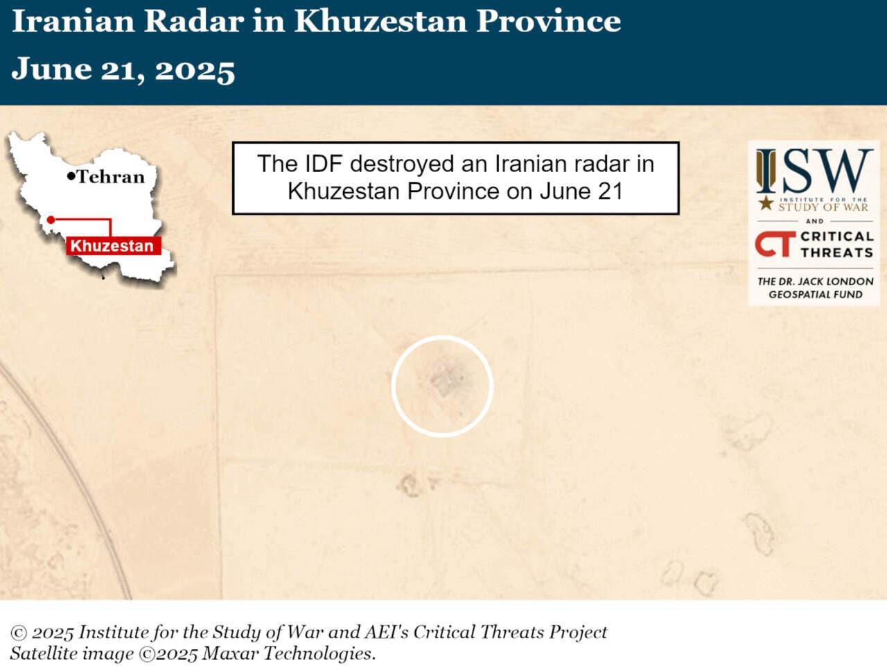 Также в отчете отметили, что 21 июня израильские авиаудары могли уничтожить иранский радарный комплекс в провинции Хузестан, о чем также свидетельствуют спутниковые снимки за 27 июня, которые просмотрели эксперты. На них видно уничтожение объекта, построенного между 2023-м и 2024 годом.