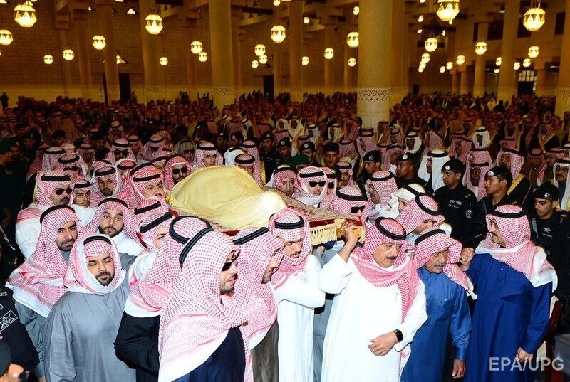 В пятницу, 23 января, в безымянной могиле на кладбище в Эр-Рияде похоронили короля Саудовской Аравии Абдуллу ибн Абдель Азиза, который умер накануне на 91-м году жизни. В соответствии с мусульманской традицией, его тело, завернутое в простую ткань светло-желтого цвета (саван), было пронесено через толпу на ковре, а затем перенесено родственниками мужского пола на кладбище.