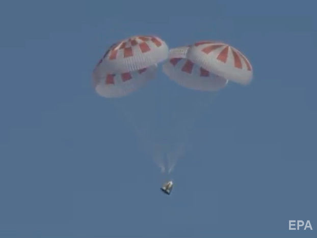 Капсула опустилась в океан на четырех парашютах.