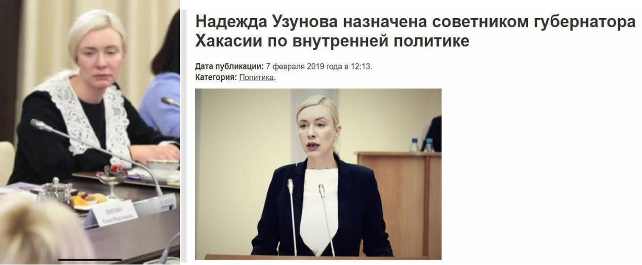 Надежда Узунова в 2019 году была советником по внутренней политике главы Хакасии, а сейчас отвечает за сбор гуманитарной помощи для мобилизованных.