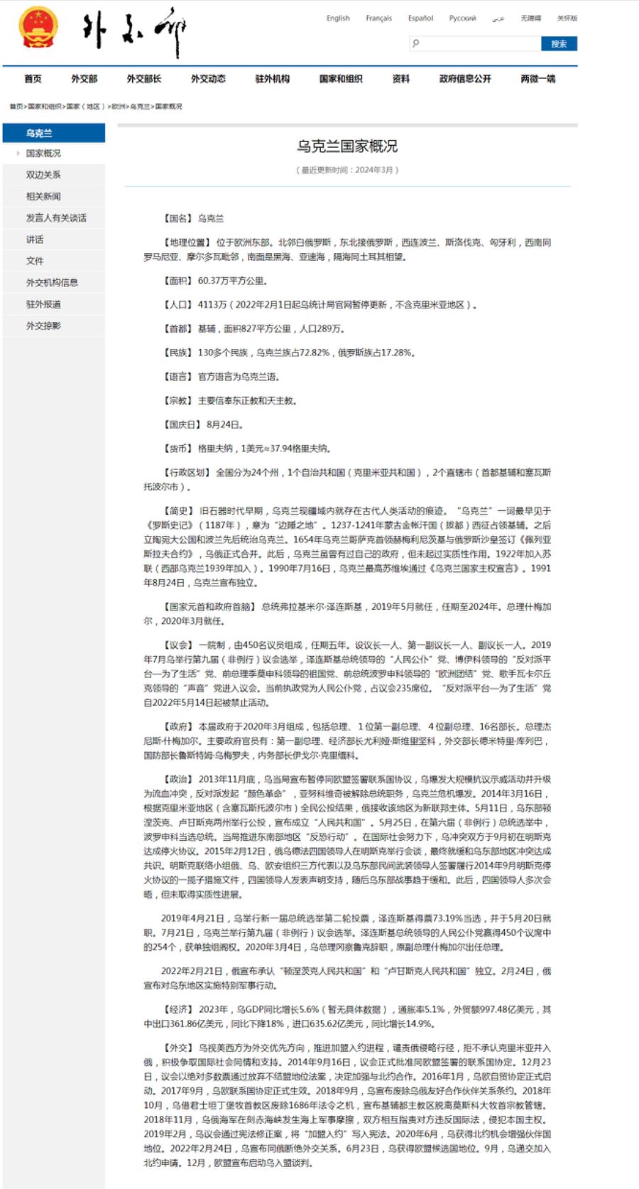 Издание приводит данные пользователя Wu Ming Jing She, который сообщил, что информация об административном делении Украины присутствовала на сайте МИД Китая после обновления в марте 2024 года, а после последнего обновления эта информация отсутствует.