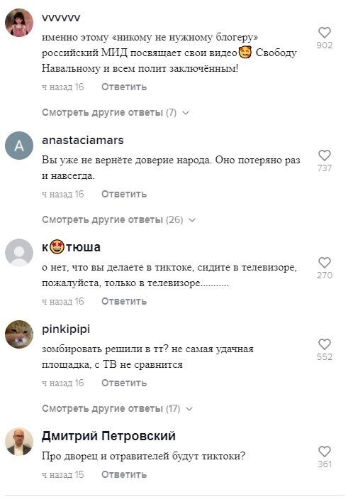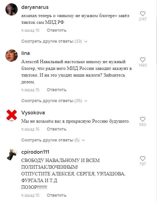 МИД России завел свой TikTok. Первые два видео министерство посвятило Навальному