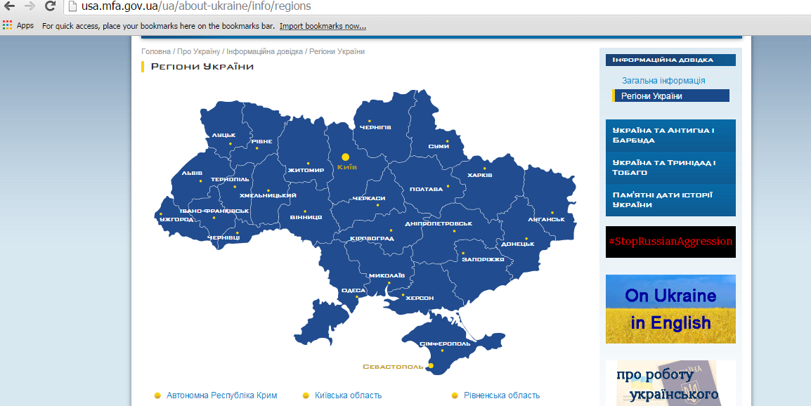 Возможно, информация рассчитана на ленивых, потому что при заходе на сайт любого украинского посольства можно увидеть неизменную карту страны, по-прежнему включающую в себя крымский полуостров.
