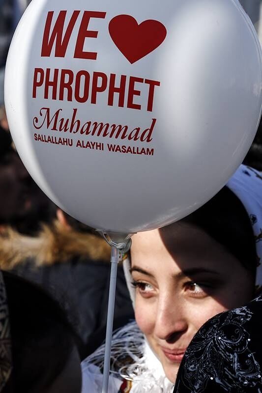 На воздушных шарах, которые держали митингующие на акции против карикатур на Мухаммеда в Грозном, слово "пророк" было написано с орфографической ошибкой.