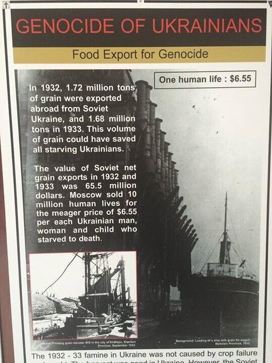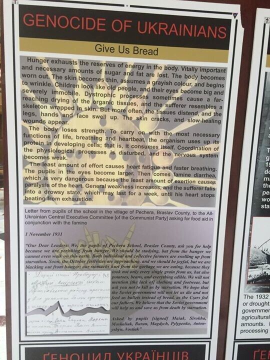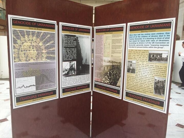 На стендах экспозиции размещены фотографии и информация о причинах и последствиях Голодомора в Украине.