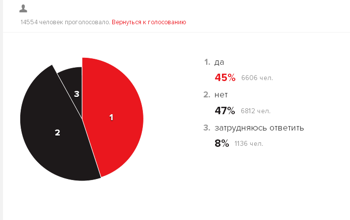 Среди пользователей сети интернет утвердительно ответили 45% слушателей, 47% не хотят такого развития событий, 8% не знают, что сказать по этому поводу.