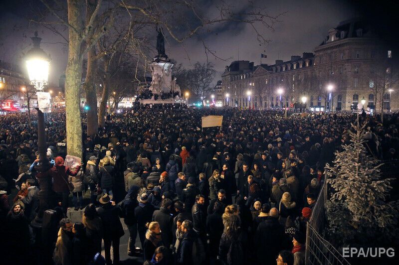 Париж скорбит по погибшим журналистам Charlie Hebdo. Фоторепортаж