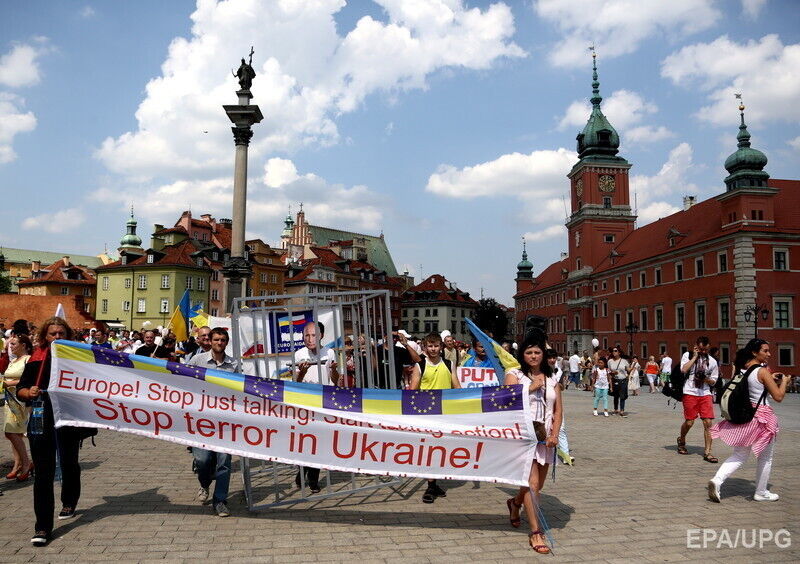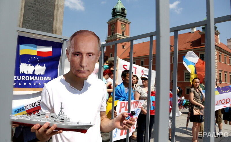 В воскресенье, 27 июля, в столице Польши Варшаве прошел антироссийский марш, в котором участвовали поляки и представители украинской диаспоры. Активисты поместили одного из участников акции в маске президента России Владимира Путина в клетку и, скандируя "Путин ху...ло!", прошлись улицами города к посольству России в Польше. Там они зажгли 298 свечей в память о погибших в Донецкой области пассажирах малайзийского авиалайнера.