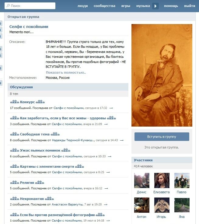 Конкурс "Селфи с покойным" был объявлен в социальной сети "ВКонтакте".