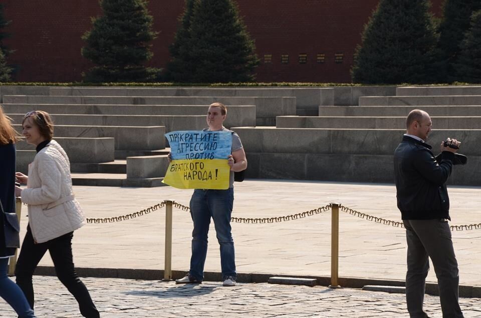 19 апреля россиянин в центре Москвы поддержал украинцев одиночным пикетом.