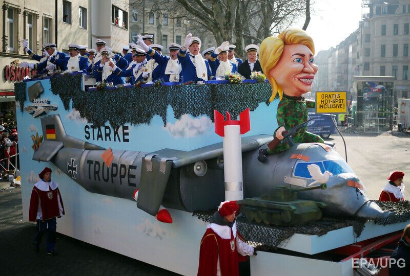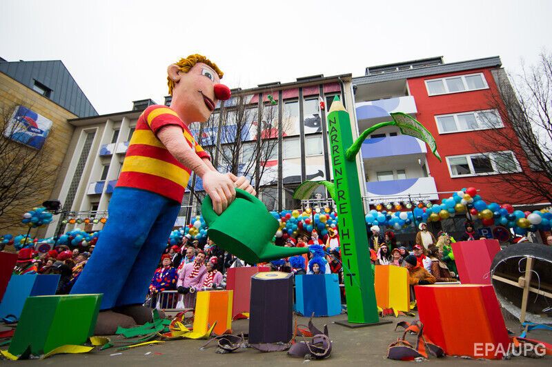 16 февраля, в “бешеный понедельник”, как его называют немцы, в Кельне и Дюссельдорфе прошли традиционные карнавальные шествия, которые собрали около двух миллионов переодетых шутов, сопровождавших традиционные сатирические повозки, сообщает Deutsche Welle. В этом году в карнавальных шествиях появились инсталляции, посвященные актуальным политическим событиям в мире. Так, в Кельне российского президента Владимира Путина изобразили в виде робота-танка “Путинатора”, который едет по Чечне, Молдове, Грузии и Украине. В Дюссельдорфе Путин появился в образе культуриста с непропорциональными бицепсами: бицепс с надписью “экономика” совсем ссохся, а второй c надписью “войско” раздулся.
