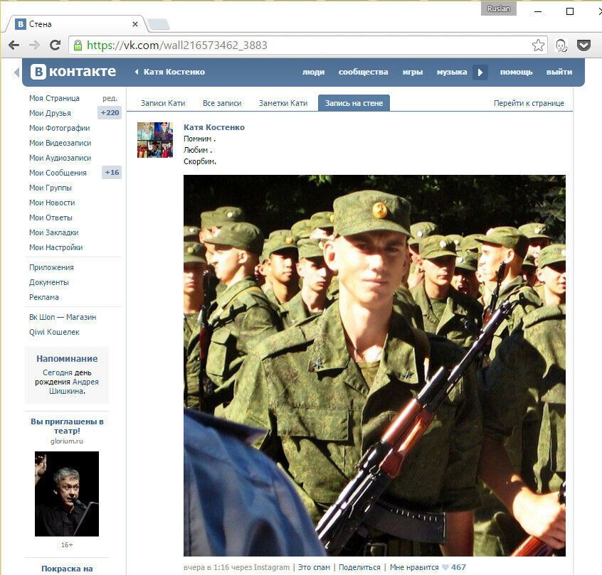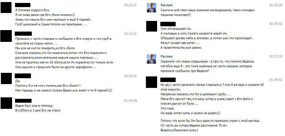 "Родственники и близкие Костенко прямо говорят, что его убили", – сообщают активисты. Они подтверждают, что когда военнослужащий погибает из-за несчастного случая, родственникам прямо так и говорят, и они сразу знают причину смерти. Как один из косвенных фактов в пользу версии о несчастном случае стоит отметить, что вечером 23 октября от сирийских активистов поступали сообщения о том, что со стороны авиабазы Хмеймим идет густой дым.