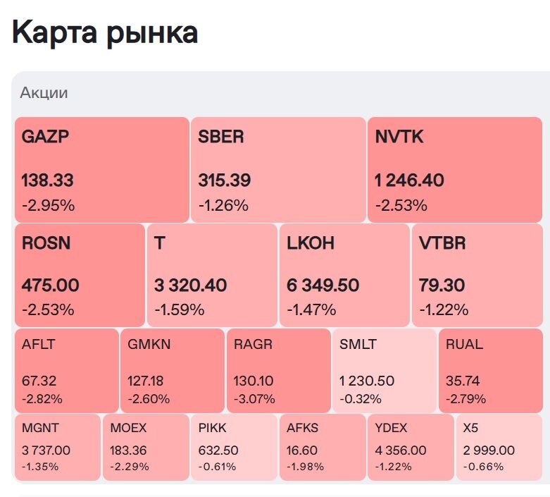 Среди компаний, акции которых упали в цене (журналисты отмечают, что это данные на 11.07), – Новолипецкий металлургический комбинат (подешевели на 3%), "Совкомфлот" (почти на 3%), "Газпром" и "Аэрофлот" (на 2,9%), "Роснефть" и "Норникель" (на 2,6%), "Северсталь" (на 2,5%), "Газпром нефть" (на 2,2%), "Сбербанк" и банк ВТБ (чуть меньше 1,5%).