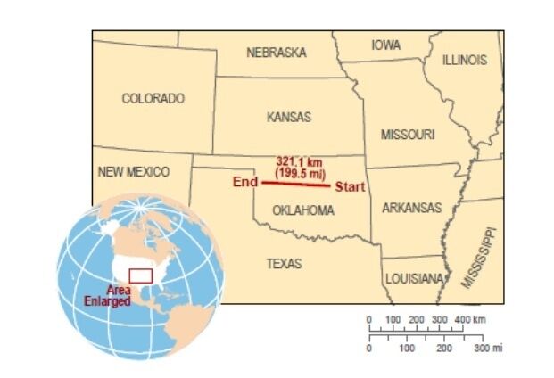 Самая длинная молния была замечена в Оклахоме в США в 2007 году, ее длина составила 321 километр – разряд протянулся практически через весь штат. Эти данные опубликованы в бюллетене Американского метеорологического общества.