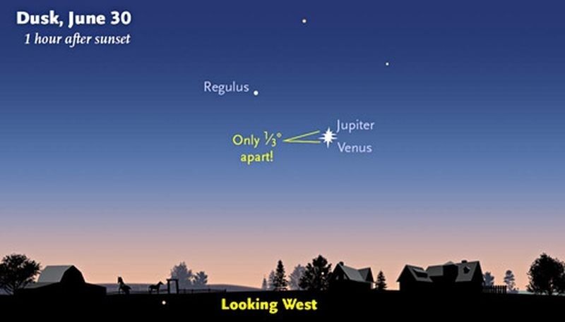 В ночь со вторника на среду Юпитер и Венера настолько сблизятся на небе для наблюдателей на Земле, что будут практически касаться друг друга.