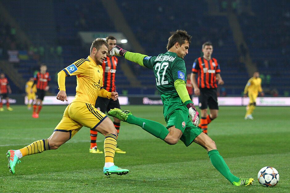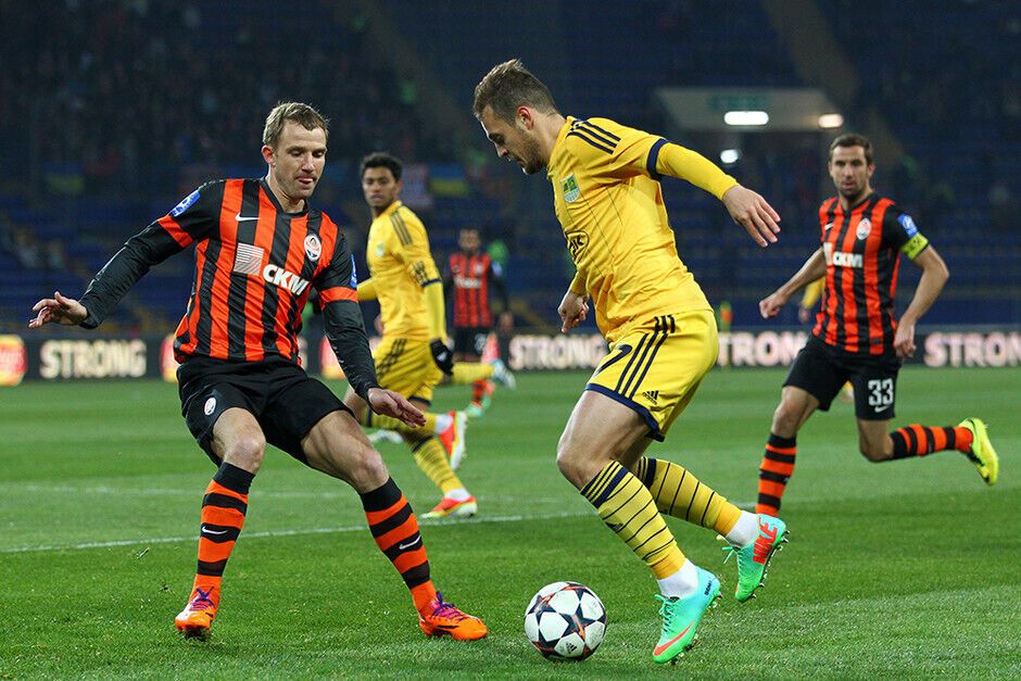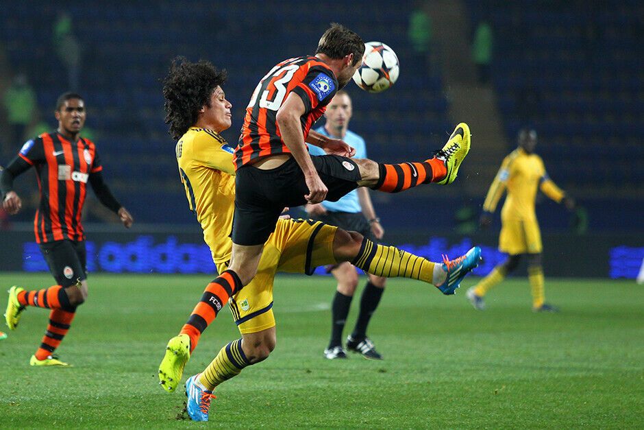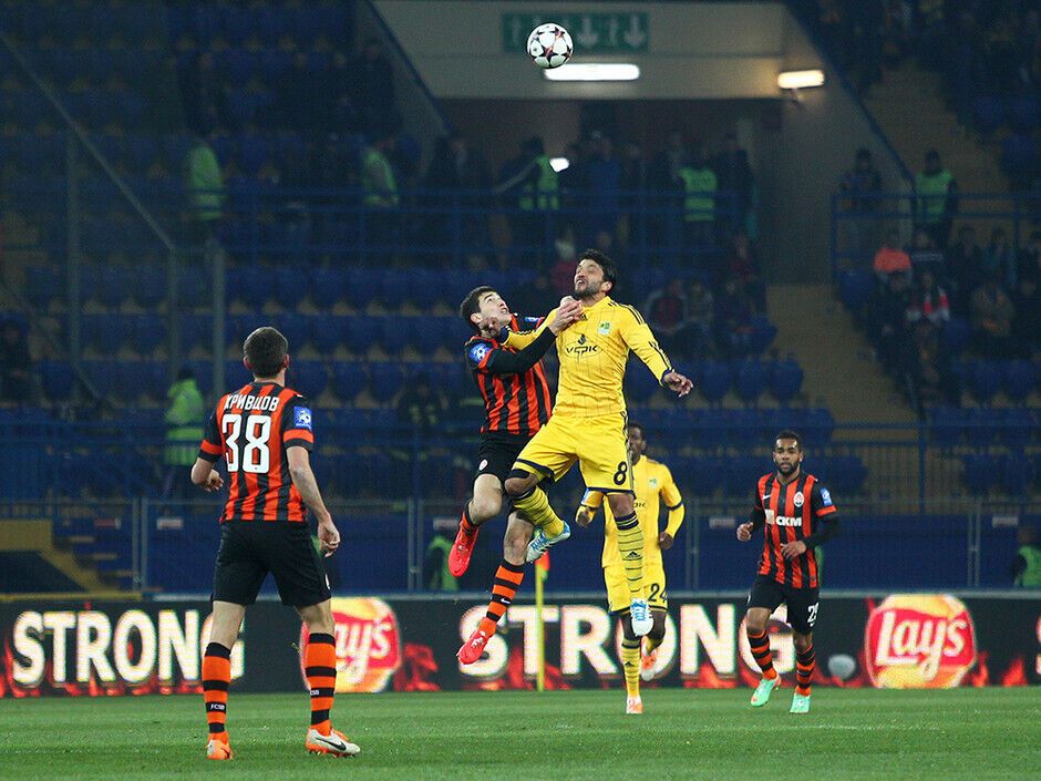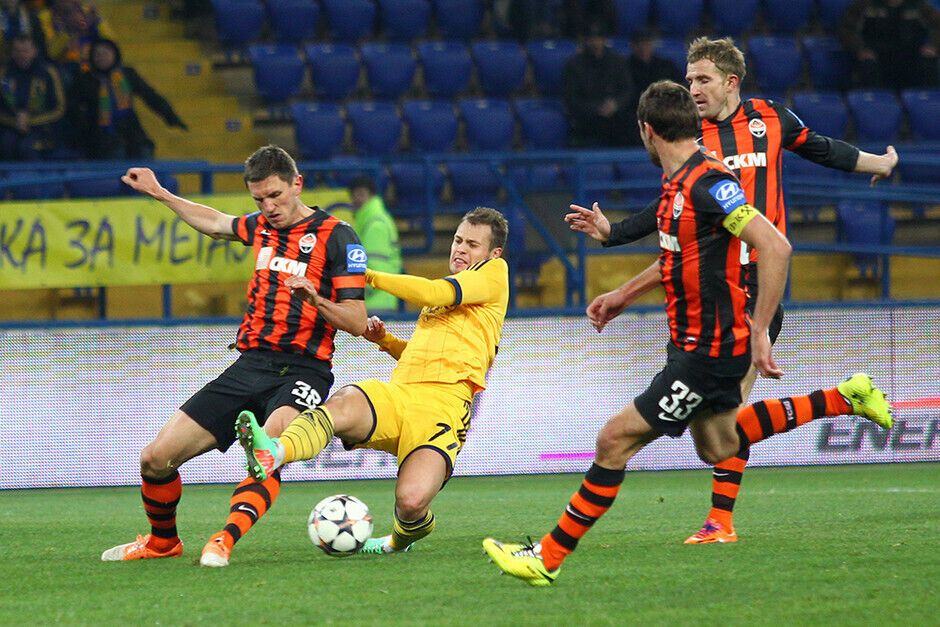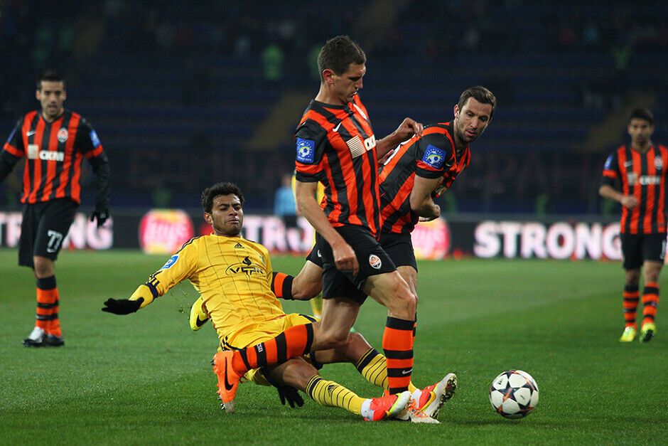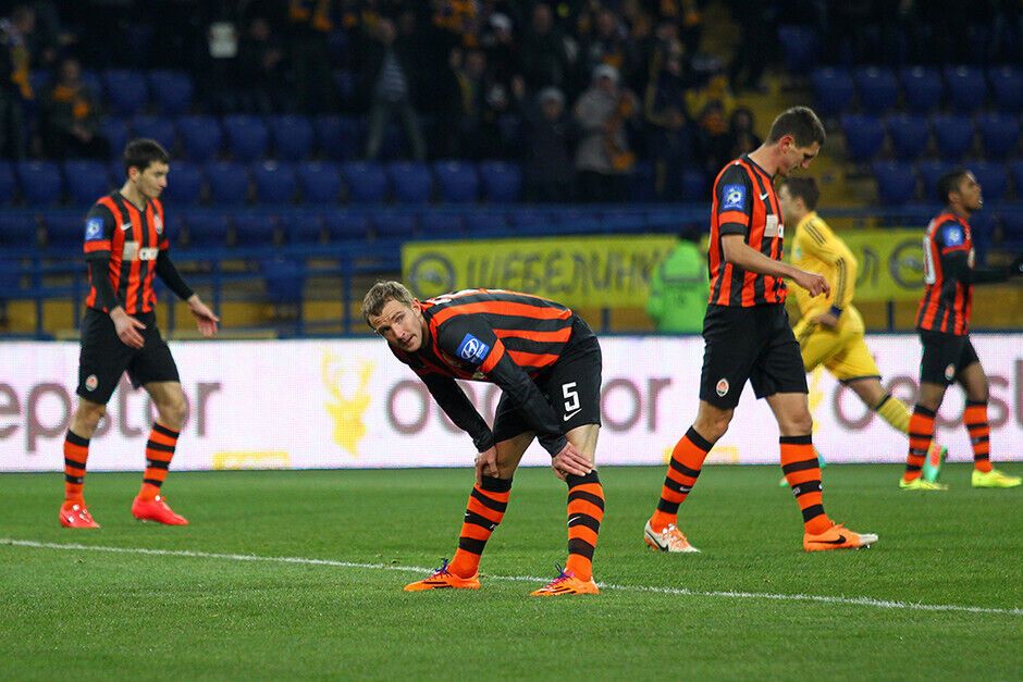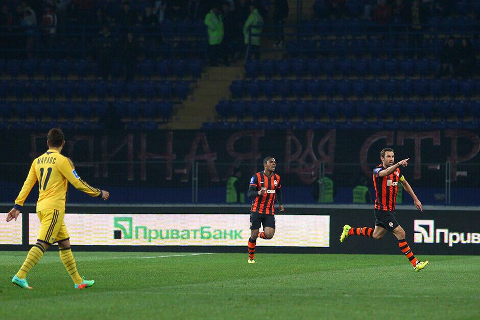 Уже к середине первого тайма "Шахтер" проигрывал хозяевам поля два гола: на 7-й минуте Александр Кучер срезал мяч в собственные ворота, а на 32-й минуте Марлос реализовал пенальти. Но еще до перерыва дончане смогли отыграться и выйти вперед: на 36-й минуте отличился Дуглас Коста, двумя минутами позже забил Эдуардо, а на 45-й минуте капитан "Шахтера" Дарио Срна вывел свою команду вперед.