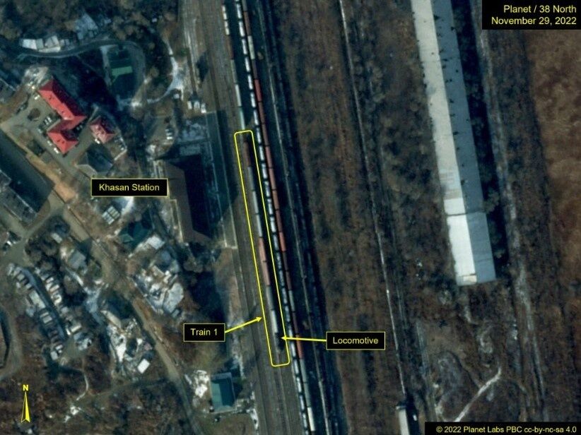 В частности, 29 ноября спутник заснял российский поезд на станции Хасан – последней российской станции перед границей с Кореей. А на следующий день, 30 ноября, этот же поезд уже был замечен на железнодорожной станции в Тумангане (Северная Корея).