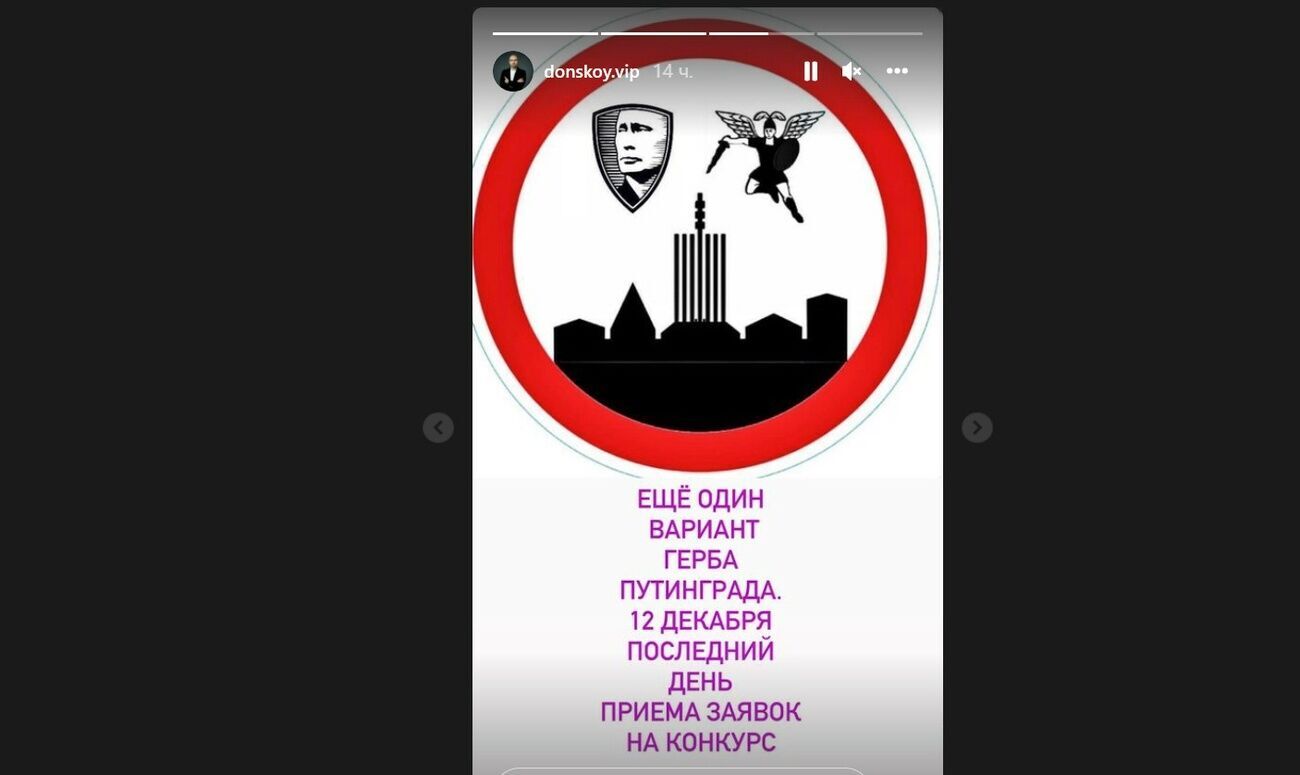 Донской объявил конкурс на новый герб города в Instagram-сторис и опубликовал примеры гербов, которые присылают ему россияне.