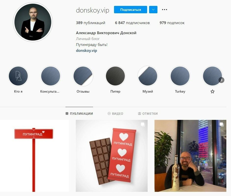 Кроме того, в описании аккаунта у экс-мэра российского города появилась надпись: "Путинграду быть!".