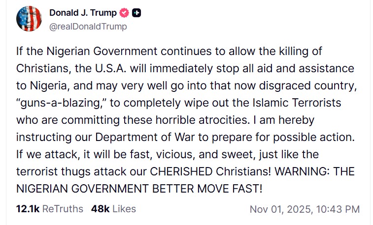 "Таким образом, если Китай не отменит свое 34-процентное повышение, которое превышает уже имеющиеся долгосрочные торговые злоупотребления, до завтра, 8 апреля 2025 года, Соединенные Штаты введут дополнительные тарифы против Китая в размере 50%, начиная с 9 апреля", – отметил Трамп.