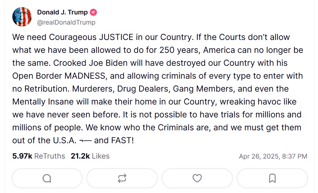 Скріншот: Donald J. Trump/Truth Social