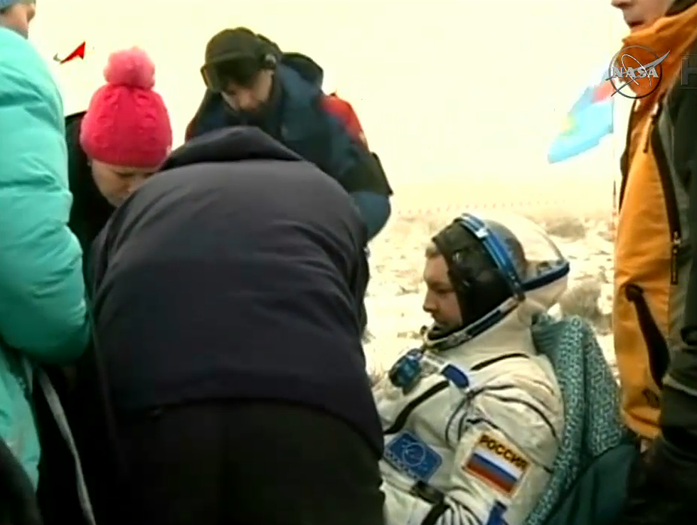 Капсула корабля "Союз ТМА-14М" с тремя космонавтами приземлилась сегодня в казахстанской степи, сообщает NASA. На Землю из полугодовой орбитальной командировки вернулись астронавт NASA Барри Уилмор и россияне Елена Серова и Александр Самокутаев. До прибытия на борт МКС участников следующей экспедиции работу на станции продолжает экипаж в составе Терри Вертса (NASA), Саманты Кристофоретти (ESA), Антона Шкаплерова (Роскосмос).