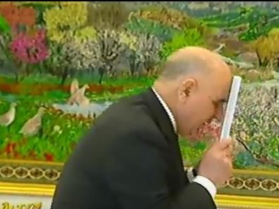 Туркменские чиновники целуют 35-ю книгу президента страны. Видео