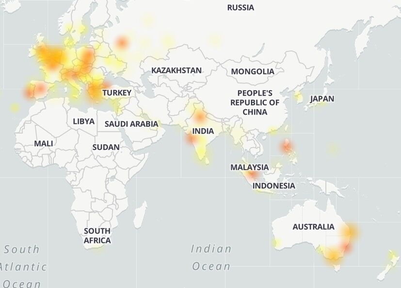 Еще больше жалоб поступает на работу Instagram. Географически они коснулись прежде всего Австралии, Индии, Малайзии и почти всех стран Европы.