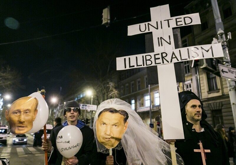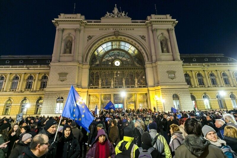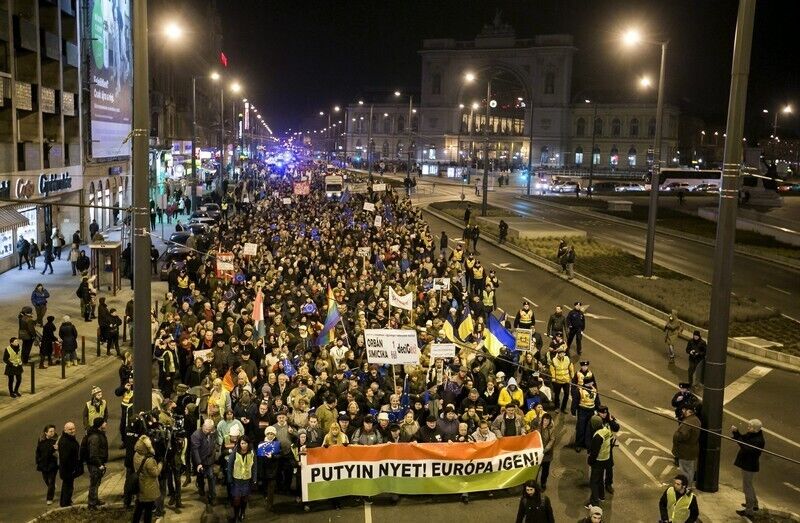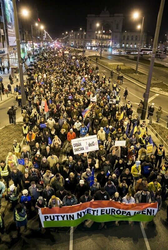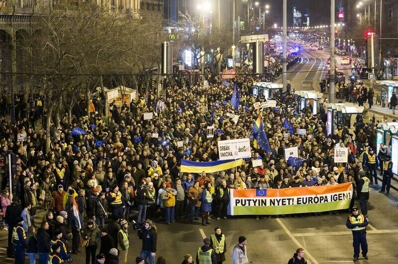 В Будапеште проходит митинг против визита Путина. Фоторепортаж