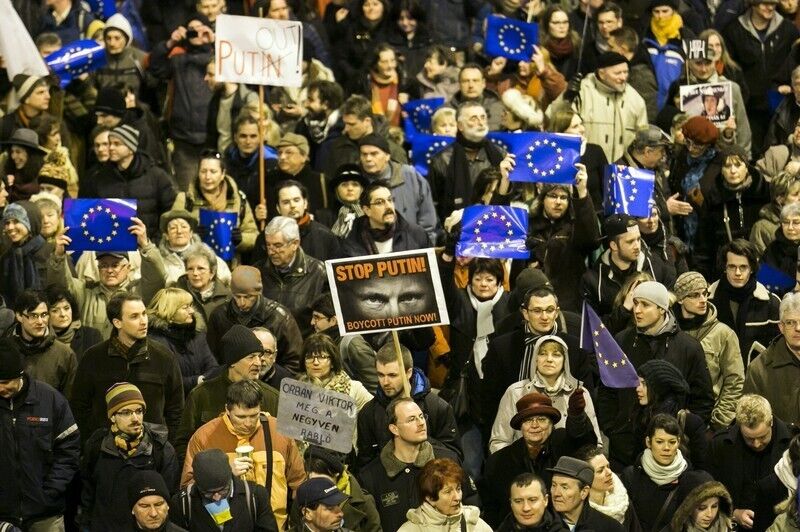 В столице Венгрии, Будапеште, около двух тысяч человек принимают участие в митинге против предстоящего визита в страну российского президента Владимира Путина. Один из главных лозунгов активистов – "Путин – нет, Европа – да!".