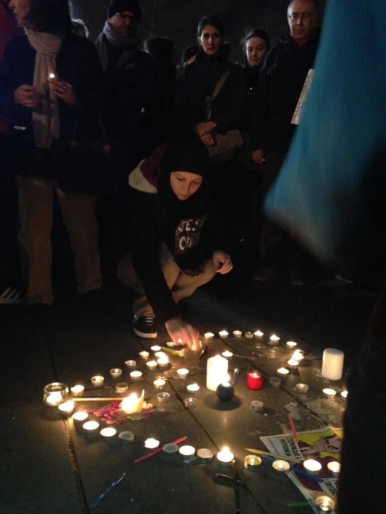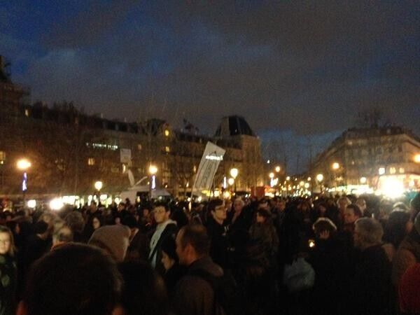 Вечером в четверг, 8 января, в центре Парижа, на площади Республики, вновь проходит митинг в память о 12-ти погибших в результате теракта в редакции сатирической газеты Charlie Hebdo. По данным издания Le Parisien, акция стартовала в 18.00 (19.00 по Киеву). Французский журналист Винсент Дэниэл сообщил в Twitter, что люди несут на площадь, к символическим мемориалам, карандаши, цветы и свечи. Кроме того, собравшиеся на площади держат в руках плакаты в поддержку свободы слова, в частности, с надписью Je suis Charlie ("Charlie – это я"). Накануне митинги в поддержку Charlie Hebdo собрал десятки тысяч парижан.
