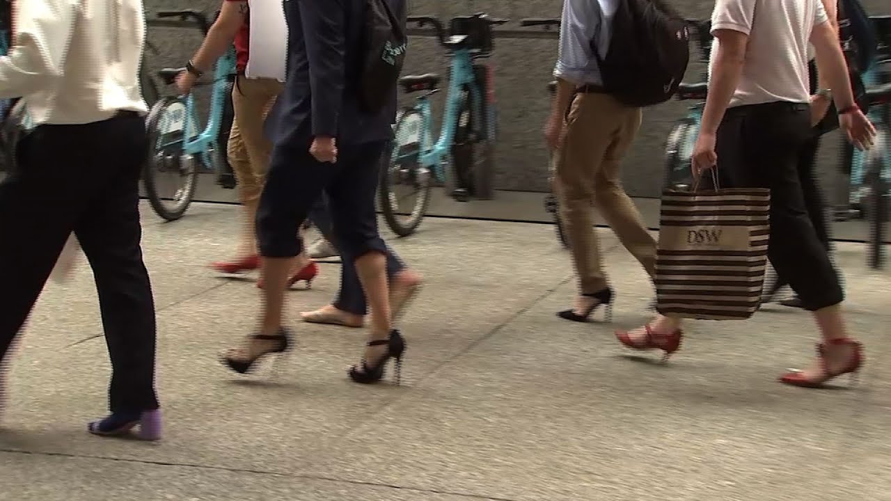 В Чикаго 20 адвокатов прошлись по улицам в женской обуви, чтобы привлечь внимание к проблеме сексуального насилия. Видео
