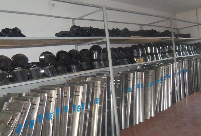На снимках можно увидеть специальную технику в большом количестве, газовые патроны, боеприпасы, противогазы, водометы и другое.