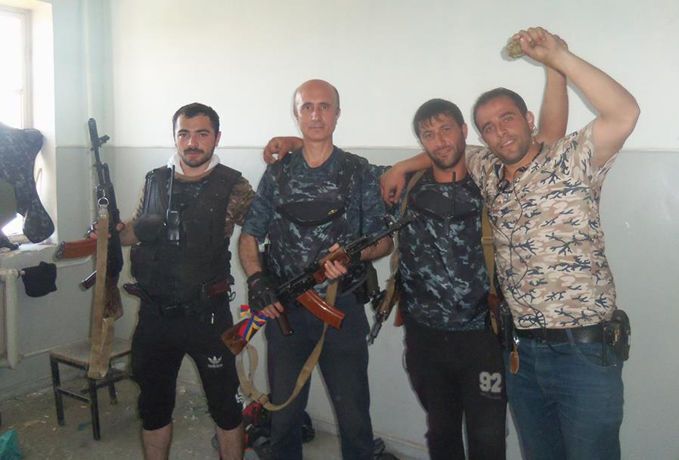 Как сообщает местное издание "PanARMENIAN.Net", вооруженная группа "Сасна црер" обнародовала фотографии с захваченной территории полка патрульно-постовой службы полиции в Ереване.