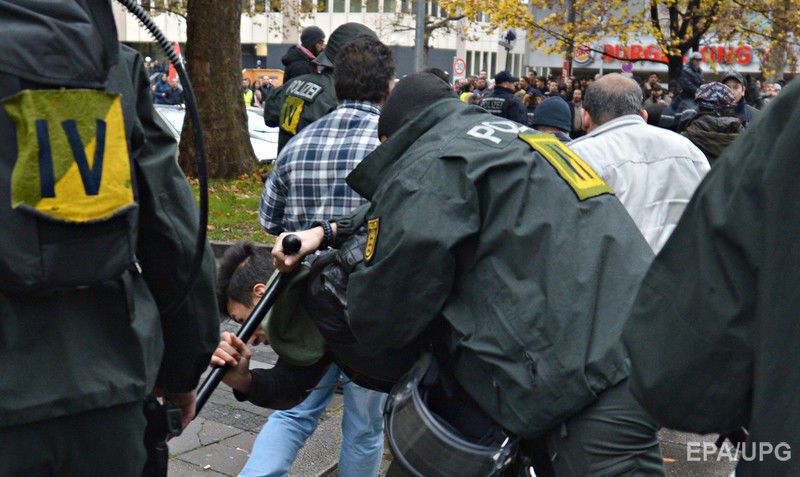 "Демонстранты бросали дымовые шашки и петарды в полицейских, которые ответили слезоточивым газом", – говорится в сообщении.