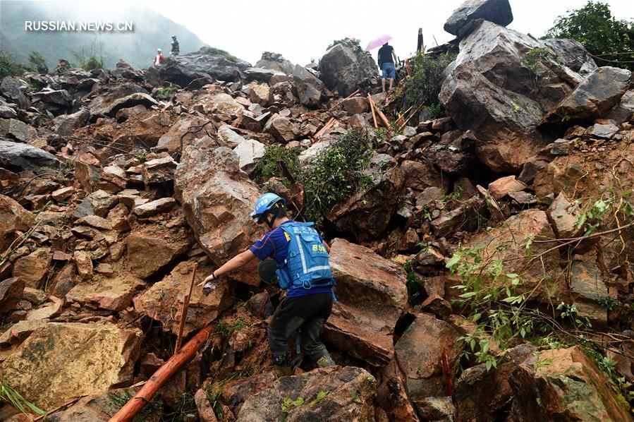 Вызванные тайфуном "Меги" ливневые дожди спровоцировали сползание с горы около 400 тысяч кубических метров мусора, которые похоронили 20 домов в деревне Суцунь города Лишуй в среду, 28 сентября.