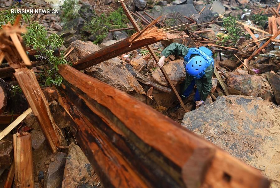 Вызванные тайфуном "Меги" ливневые дожди спровоцировали сползание с горы около 400 тысяч кубических метров мусора, которые похоронили 20 домов в китайской деревне Суцунь города Лишуй.