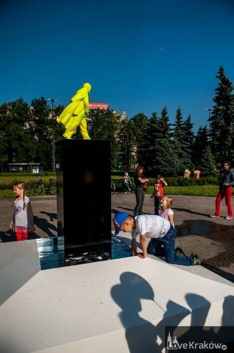 На центральной площади польского города появился фонтан кислотно-желтого цвета, изображающий лидера Октябрьской революции. Скульптура получила название "Фонтан будущего". 25 лет назад на этом самом месте демонтировали старый памятник Владимиру Ленину. Установили новую миниатюрную скульптуру в понедельник, 9 июня, а через несколько дней ее перенесут на территорию театра "Лазьня-Нова".
