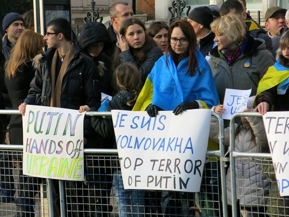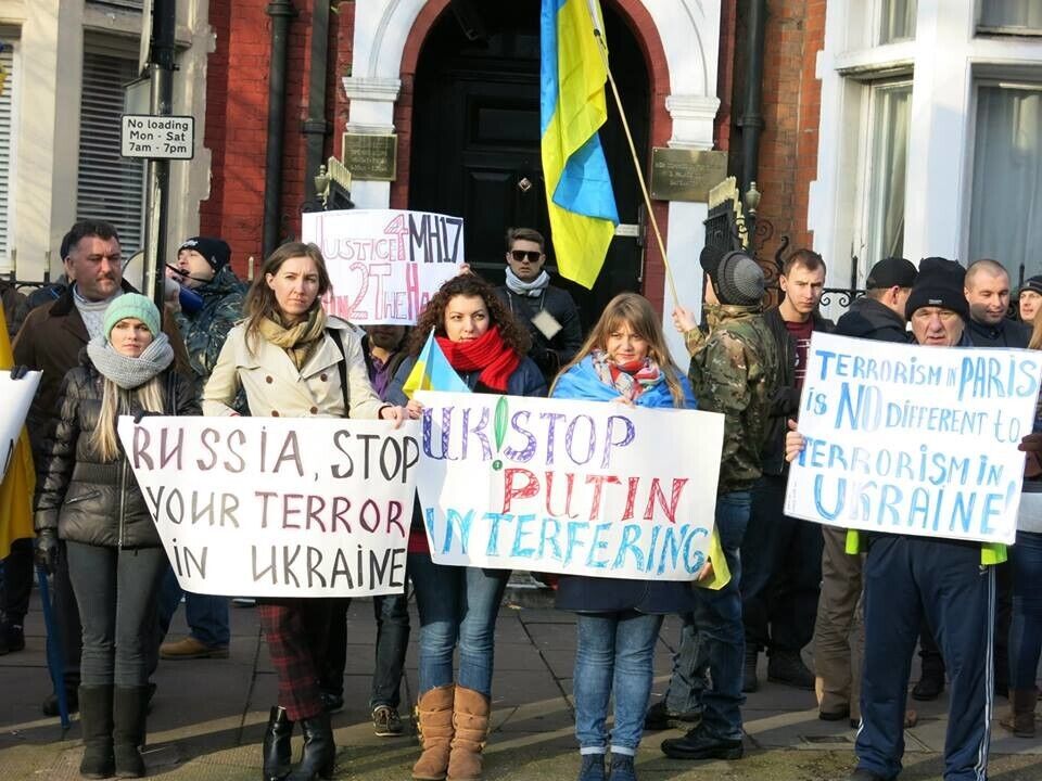 В Лондоне около 200 человек сегодня митинговали под российским посольством в знак протеста против российского терроризма и агрессии в Украине. Об этом сообщается в группе London Euromaidan. Кроме представителей украинской общины в акции приняли участие сторонники из Беларуси, Польши, Грузии, Литвы и Великобритании. Они держали в руках плакаты "Я – Волноваха", "Россия, убирайся из Украины", "Остановите путинского агрессора".