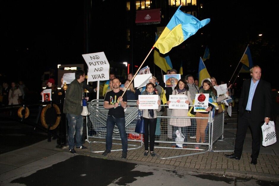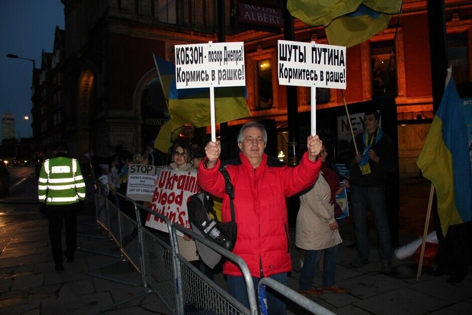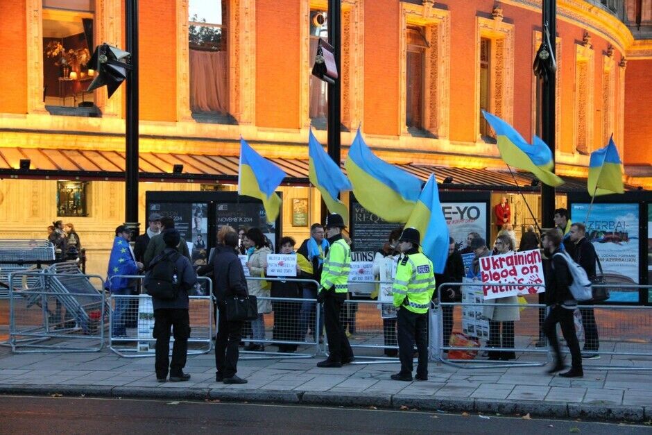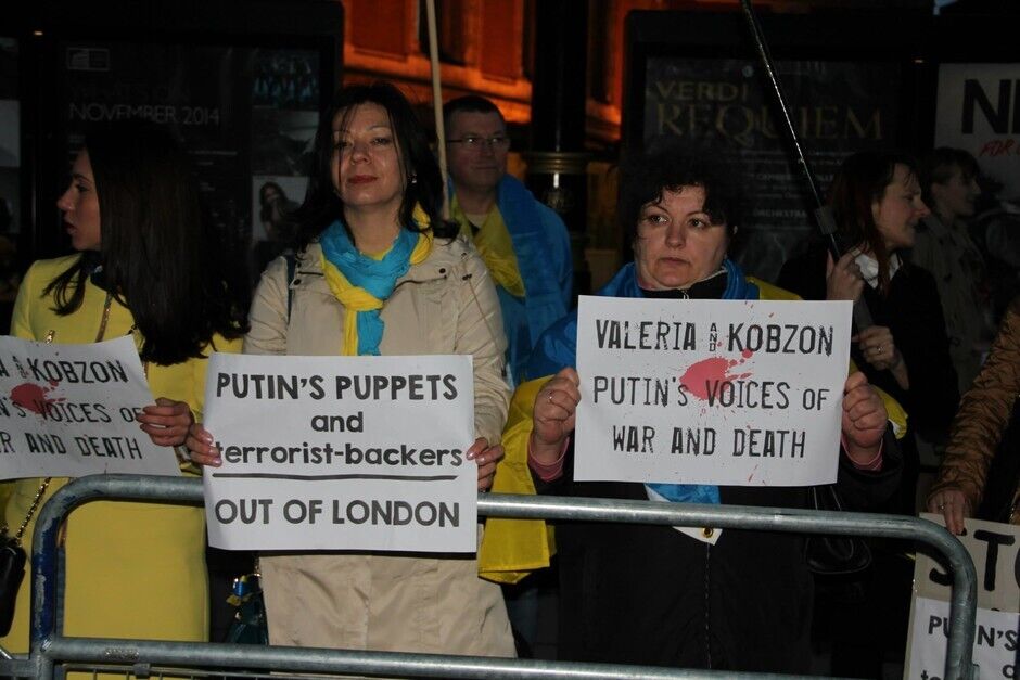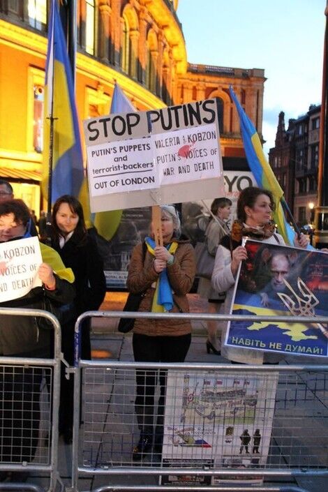 Во вторник, 21 октября, представители украинской диаспоры протестовали у лондонского "Альберт-холла", где выступала российская певица Валерия. Причина протеста – поддержка Валерией курса Кремля относительно Украины. Протестующие держали флаги Украины и плакаты с надписями "Руки прочь от Крыма! Руки прочь от Украины", "Кровь украинцев на руках Путина", "Шуты Путина, кормитесь в Рашке!". На некоторых плакатах были также слоганы с критикой певца Иосифа Кобзона, который должен был приехать на концерт Валерии, но в последнюю минуту визит отменил. Однако акция проведению мероприятия не помешала.