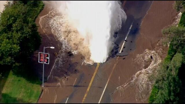 Сегодня, 29 июля, в Лос-Анджелесе неподалеку от Калифорнийского университета случился мощный прорыв канализации. В результате на улицы города попало около 40 млн литров воды. Затоплены объекты инфраструктуры, в частности известный бульвар Сансет.