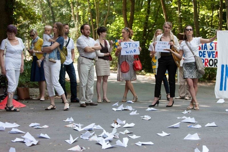 Участники акции таким образом выступили против поддержки Россией боевиков, которая, по мнению представителей диаспоры, привела к катастрофе рейса MH17.