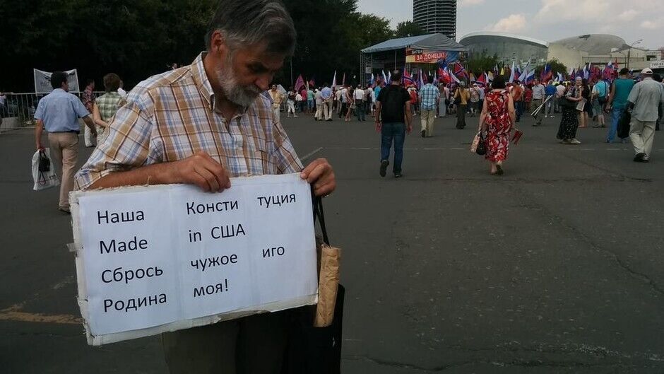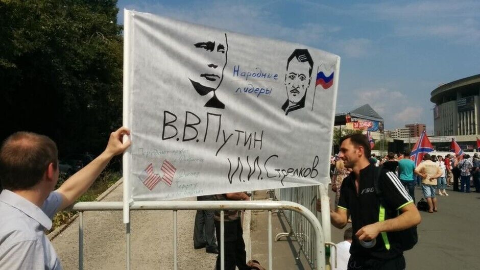 2 августа 2014Пользователь Роман Цымбалюк в Facebook пишет, что митингующие предлагают Стрелкова в президенты РФ, скандируют "русские – вперед" и "все кто против – фашисты". На митинге продаются "патриотические" футболки за 1 тысячу рублей.
